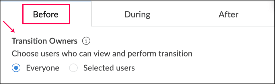 Selected users: Only the chosen users can perform the transition. On selecting this option, the Add Transition Owner pop-up appears. Here, you can choose one of the following: