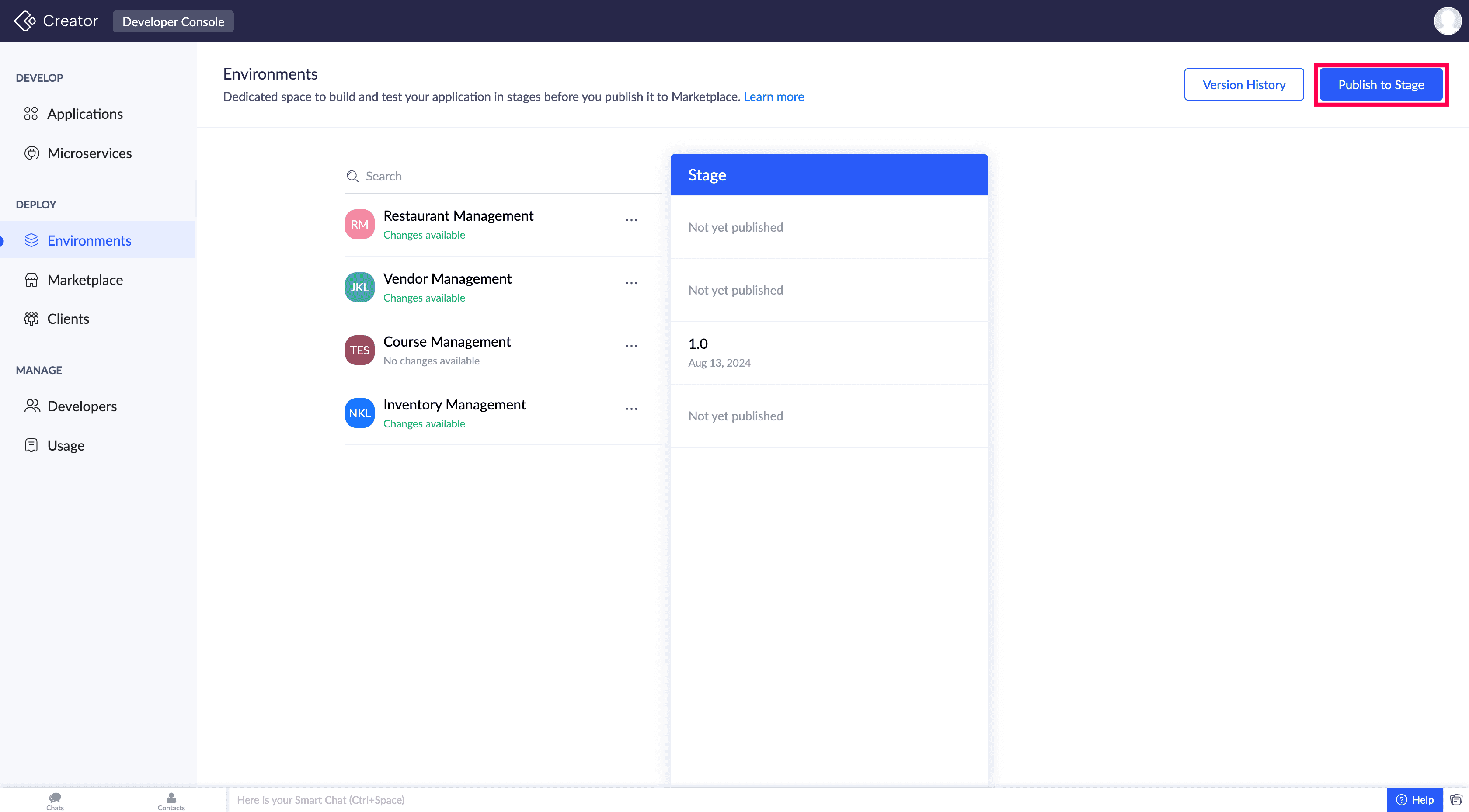 This option is available under both Development and Stage environments. Clicking on this option takes you to the live mode of the respective environment, where you can thoroughly test the application.