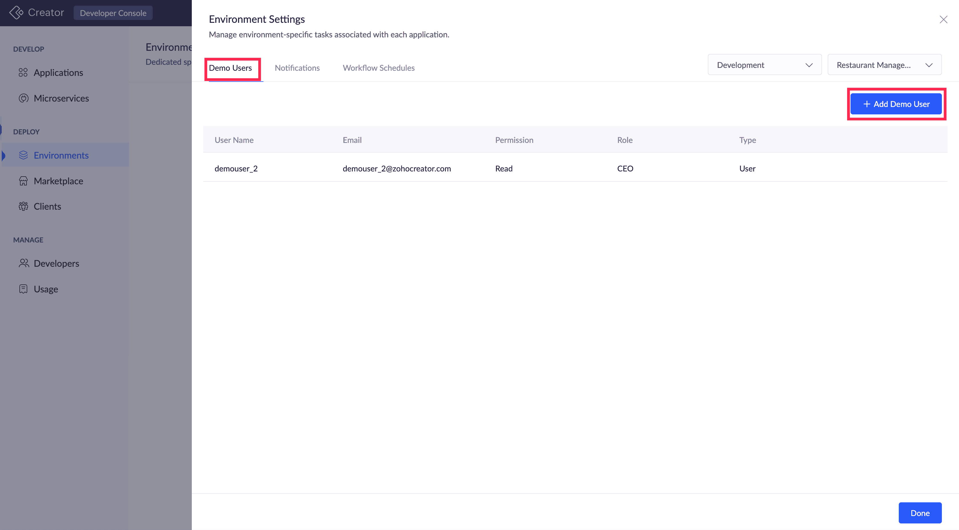 Note: Demo users are predefined mock users, and a maximum of five are provided.