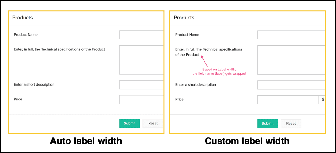 When a user accesses your form, Zoho Creator calculates the label width based on the field that has the longest label on your form.