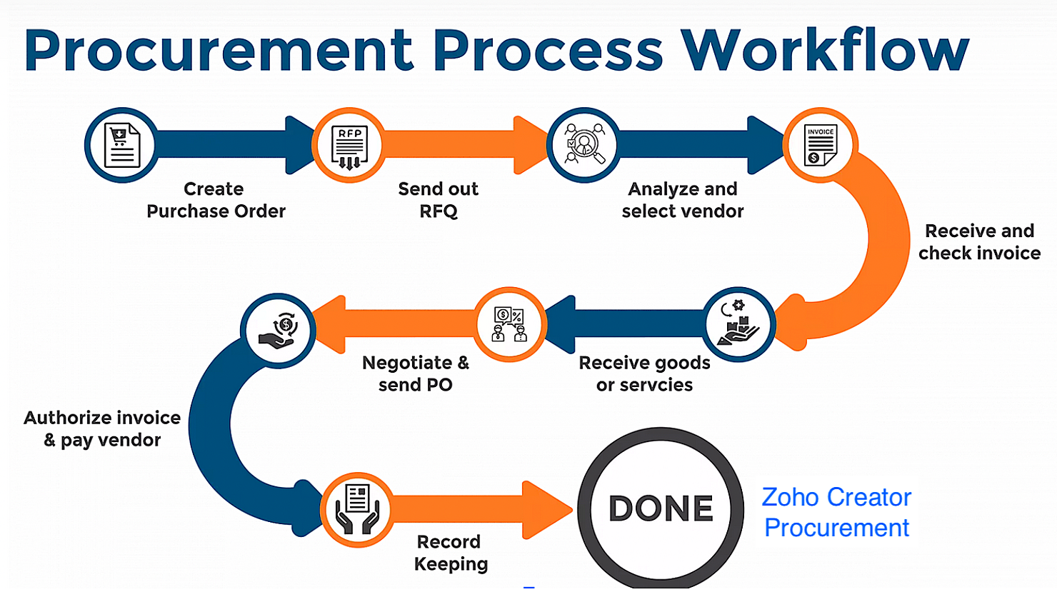 Procurement by Zoho Creator is a unified solution developed to fulfill procurement management needs seamlessly. It helps to digitize unique processes from requisition to tracking, and to manage every step of the procurement lifecycle, all under one roof.