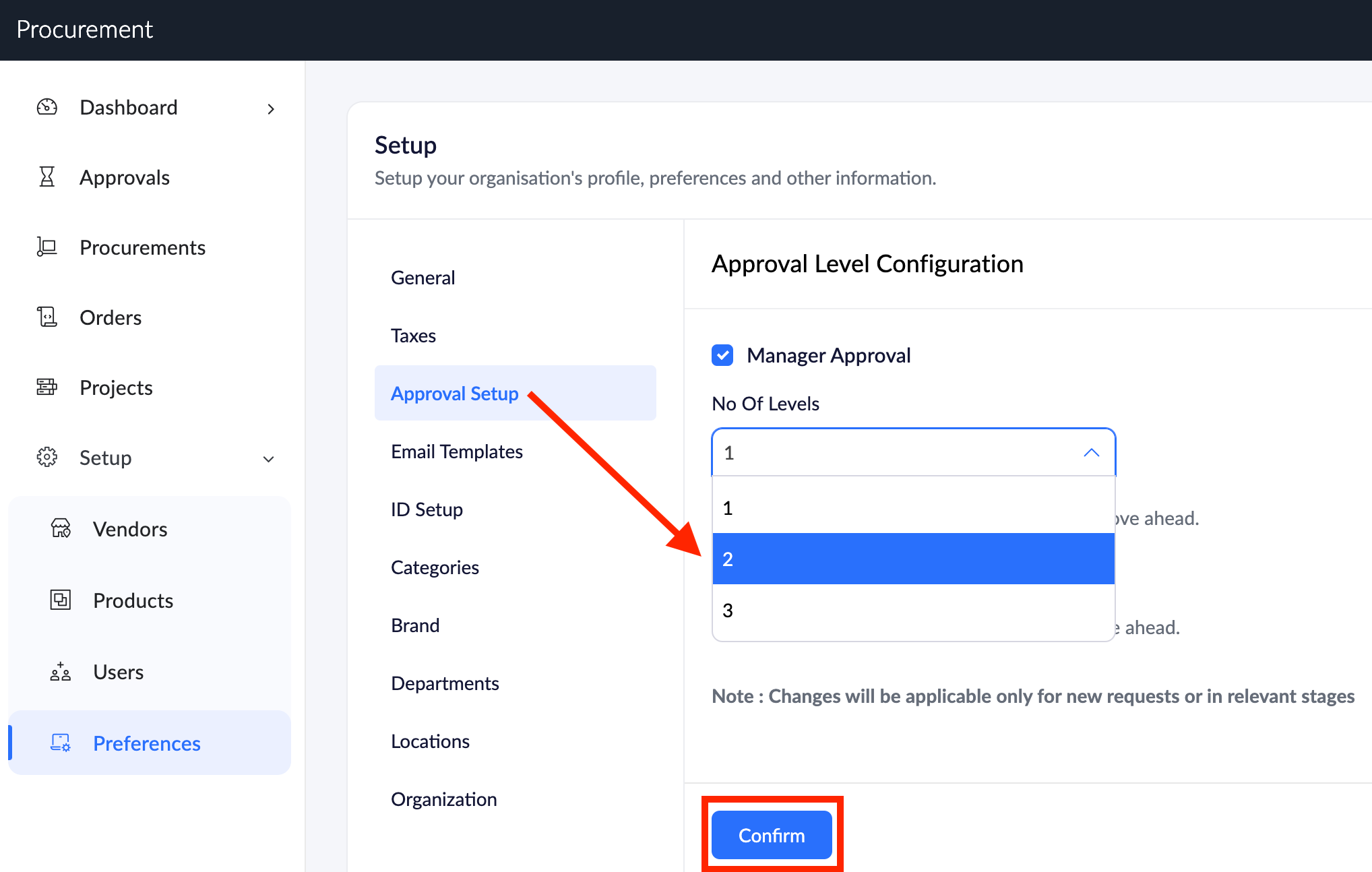 2. Procurer raises a PR for manager approval (with more than one manager level (eg: L1, L2)).