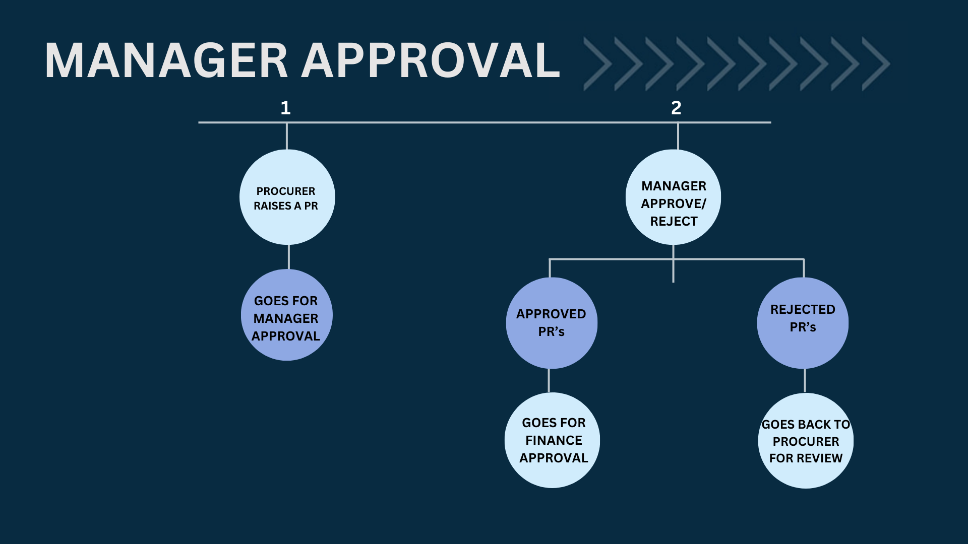 A PR (Procurement Request) must be raised for the manager to approve or reject it, which enables the procurement process to begin. Please check this document to understand more about the procurement process.