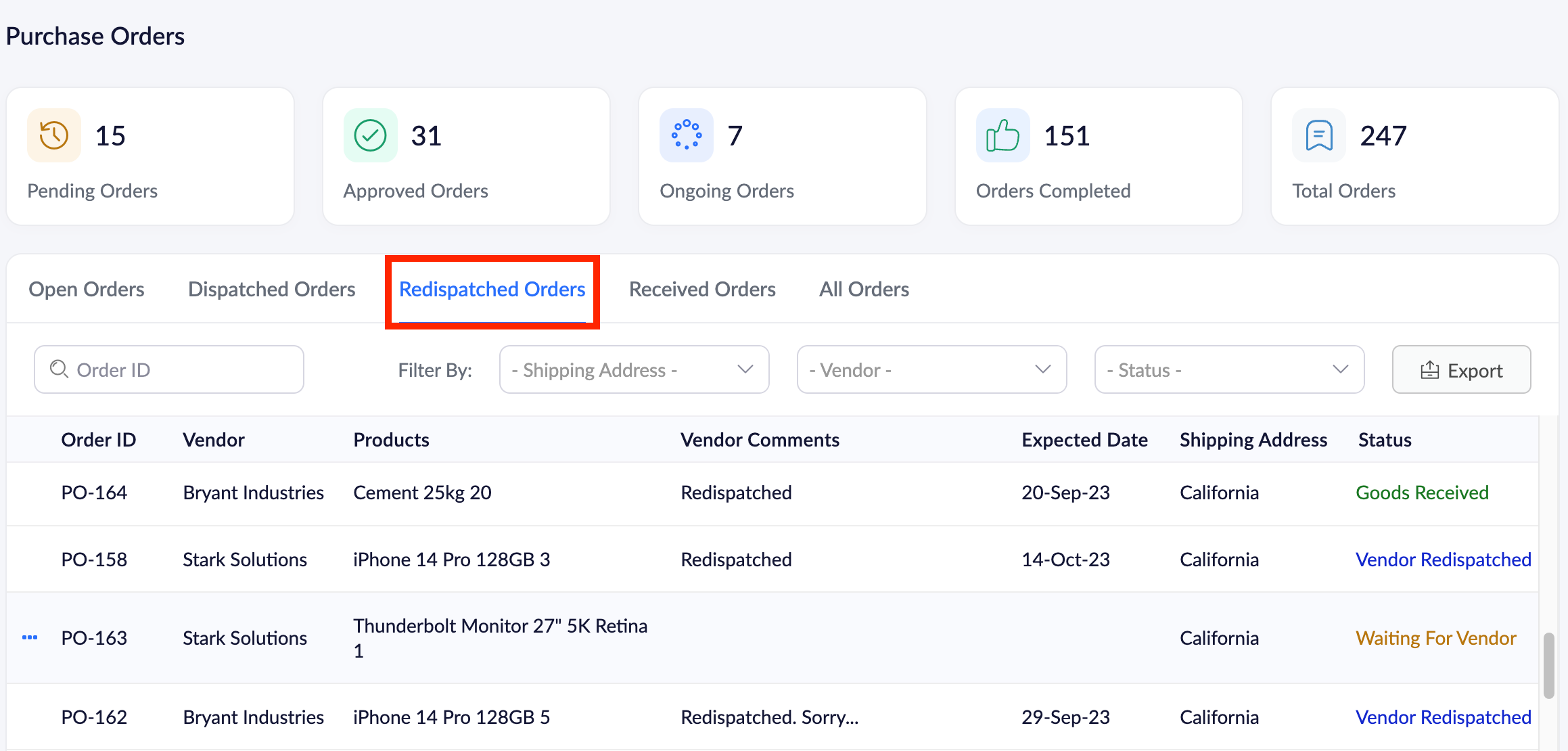 6. Similarly, you can also track and manage the Redispatched Orders if there are any issues with the order.