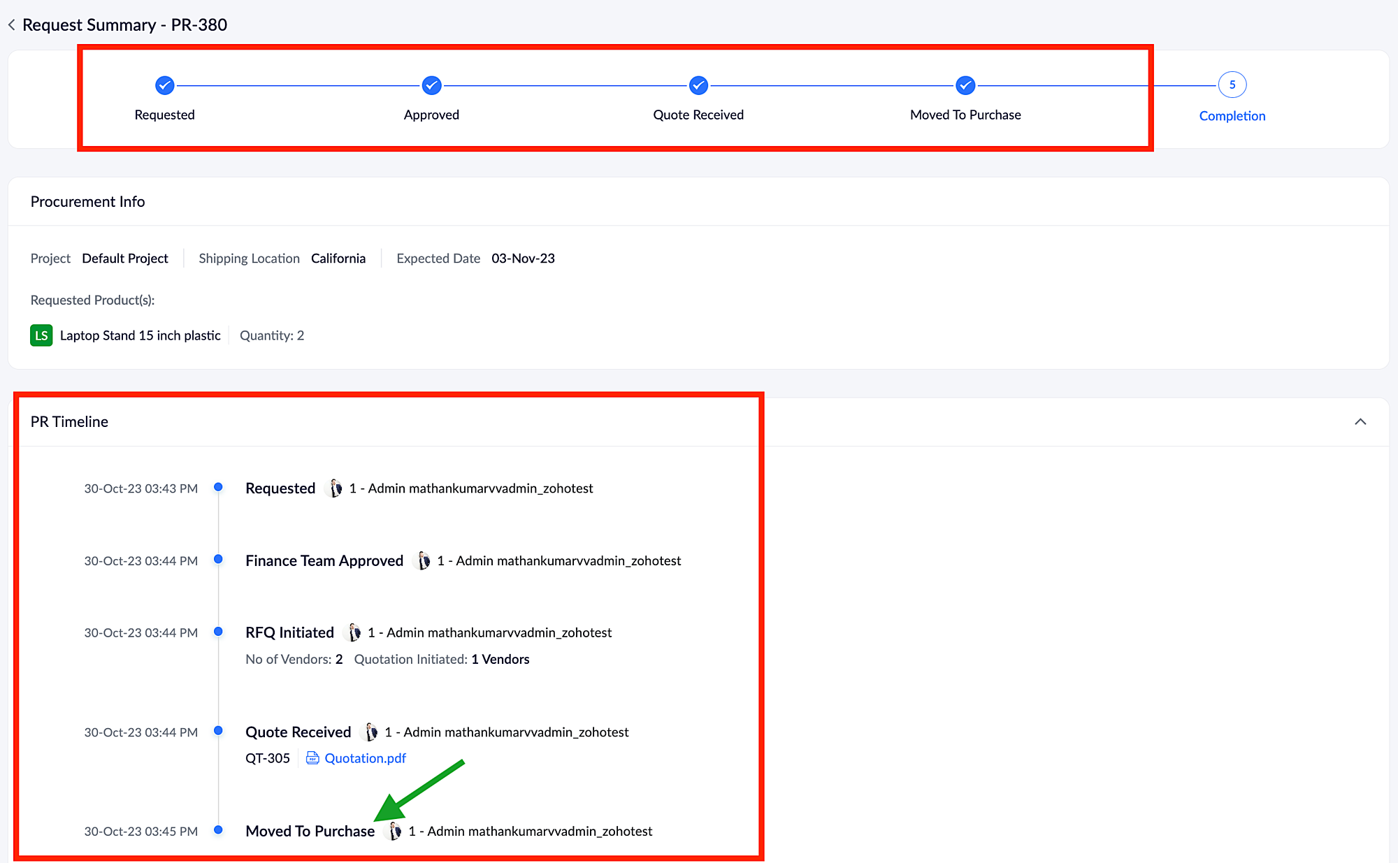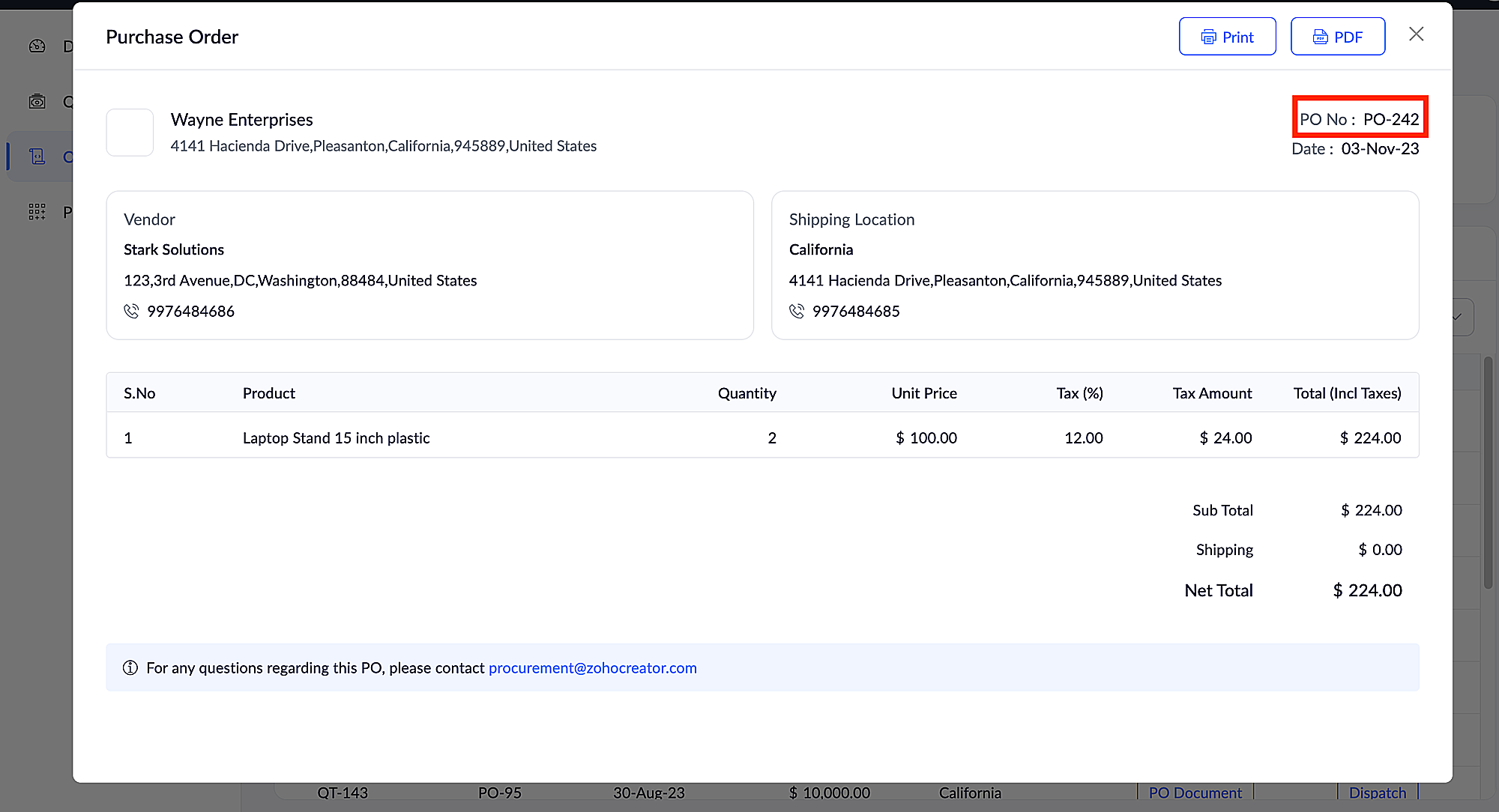 Note: As part of the procurement process, PO-242 will simultaneously be processed by the vendor as well.