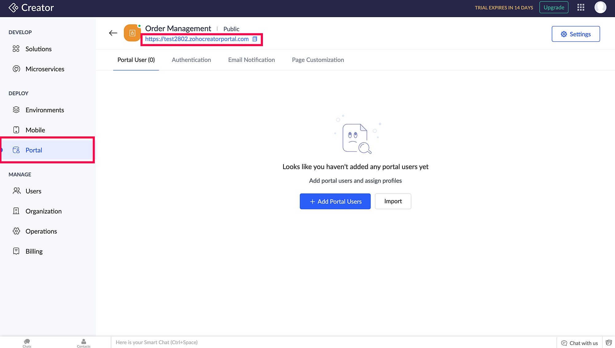 - In this tutorial, the portal URL uses default domain (zohocreatorportal) offered by Zoho Creator. You can also use custom domains and customize your customer portal URL. Learn more