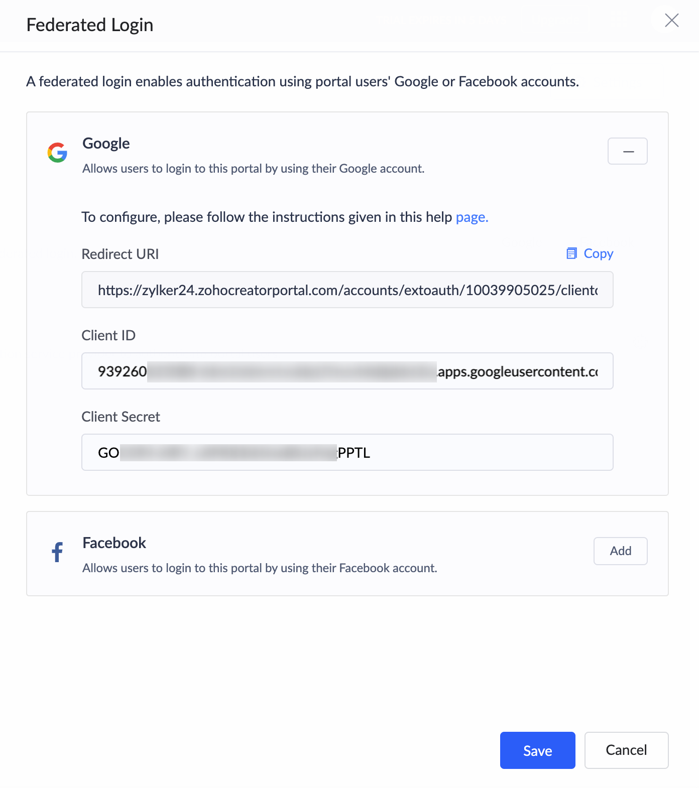 register a client in Google. On registering, a client ID and client secret will be generated. Enter them in the