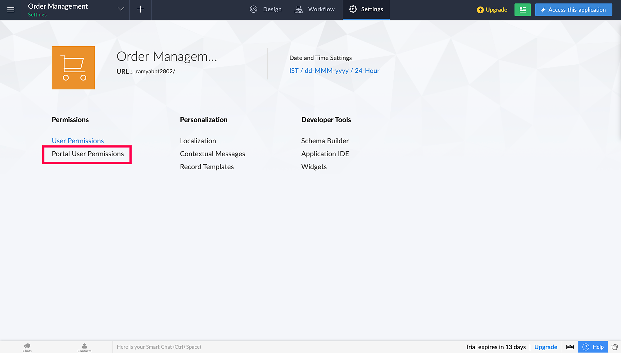 - You can define custom permission set for portal users using the Portal user permissions option in Application Settings.