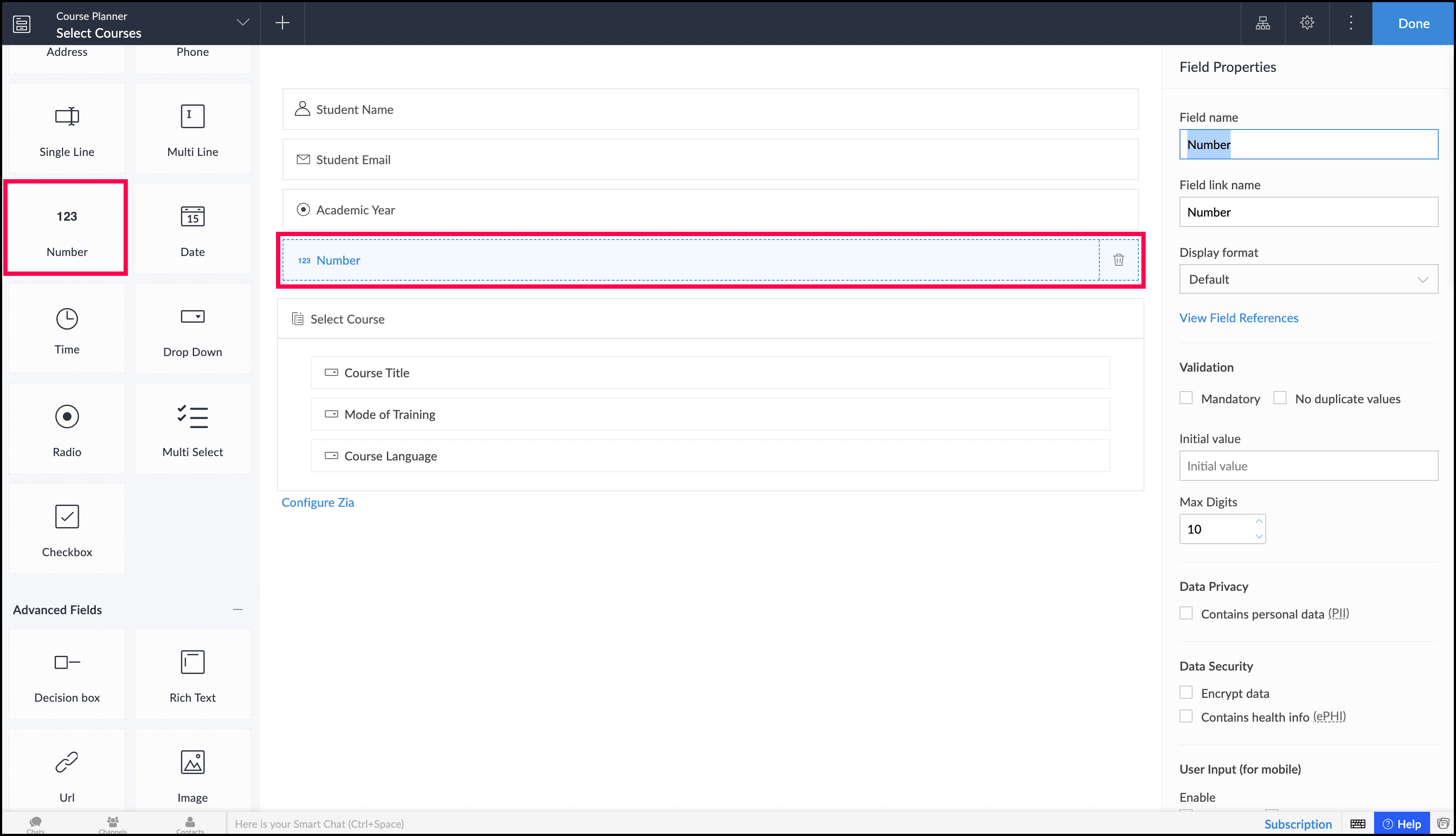 1. Navigate to the form builder of your preferred form and include a Number field.
