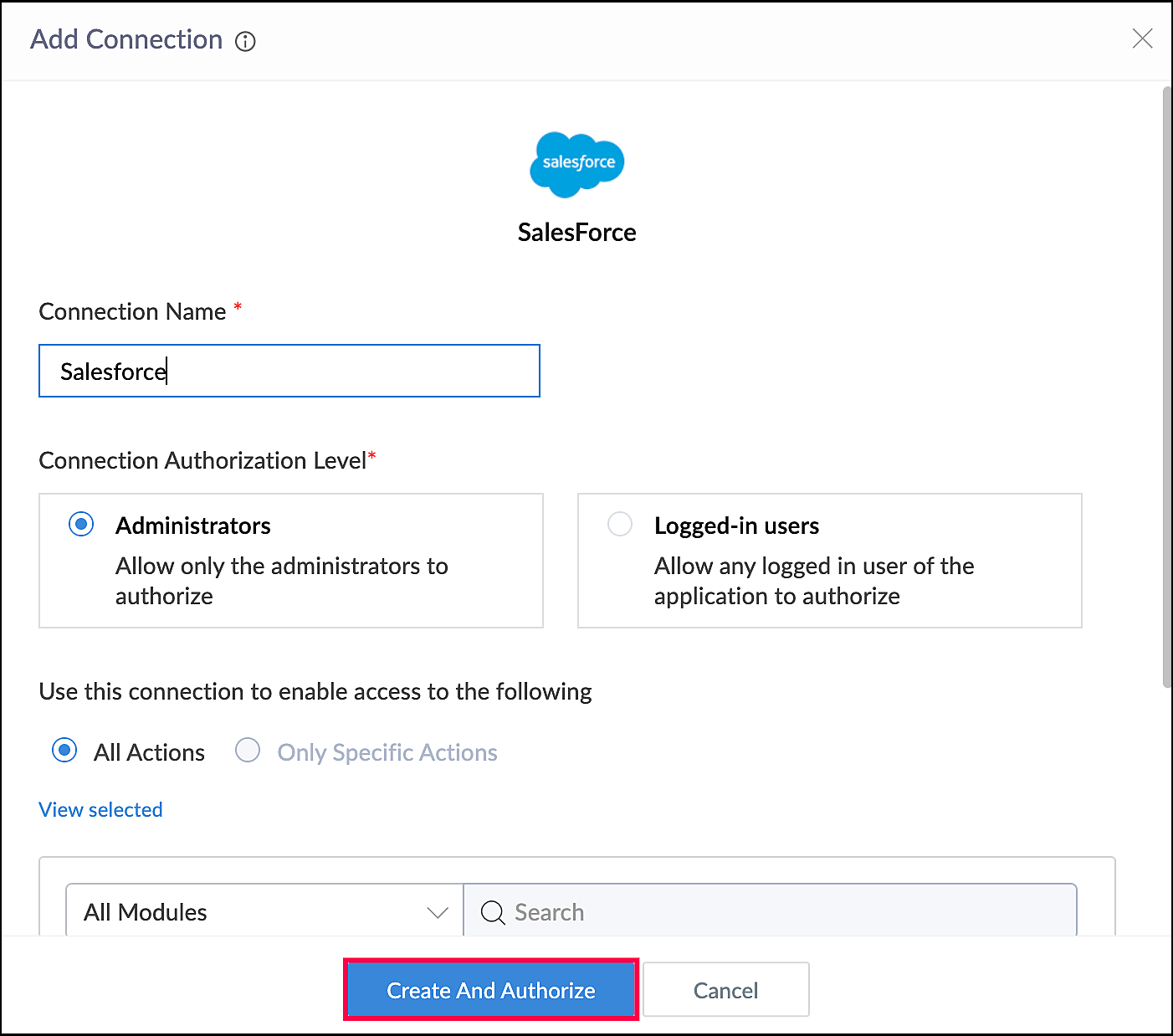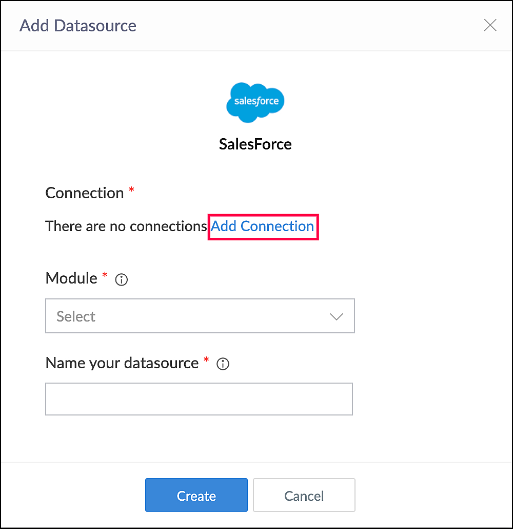 - Click Add Connection in the pop-up to create a Salesforce connection.
