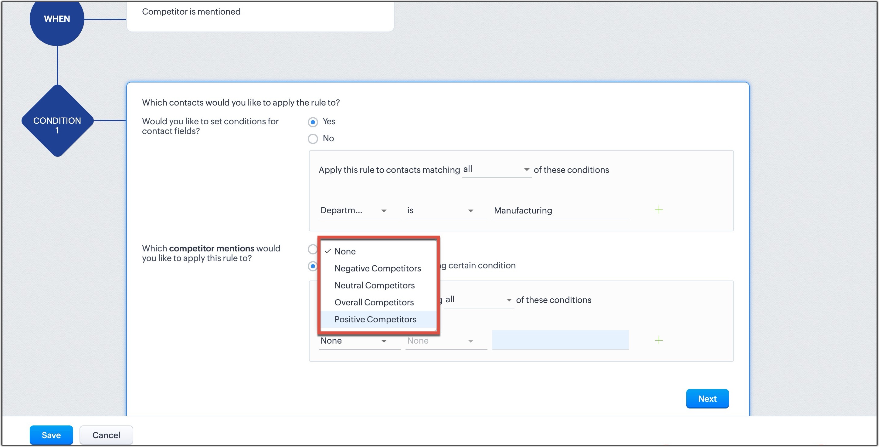 Example : In a deal follow-up scenario, you may have the following requirements which can be best configured with Workflow conditions.