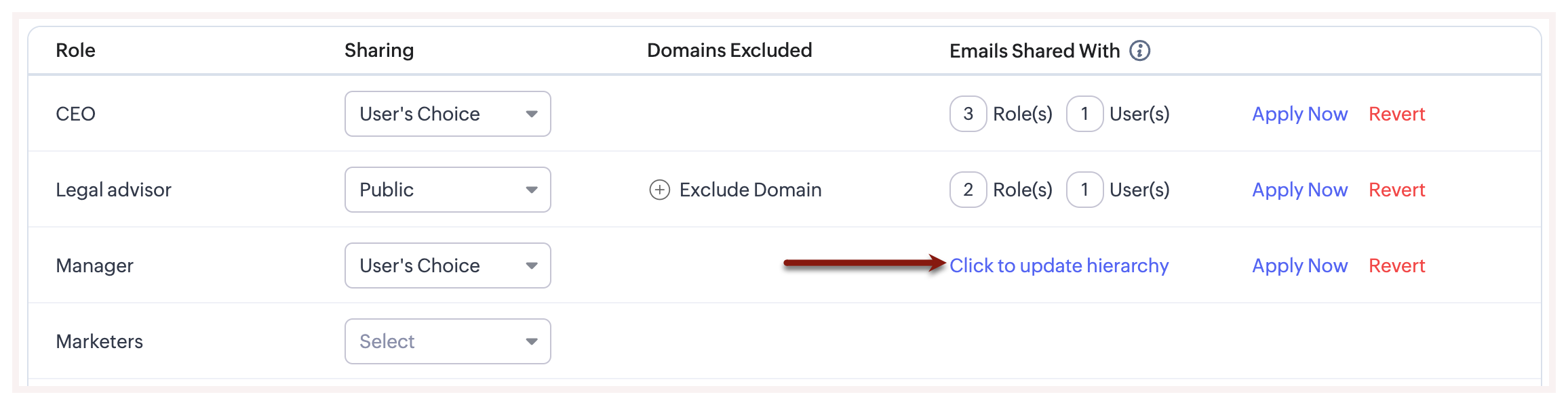 5. Under Emails Shared with Click to update hierarchy.