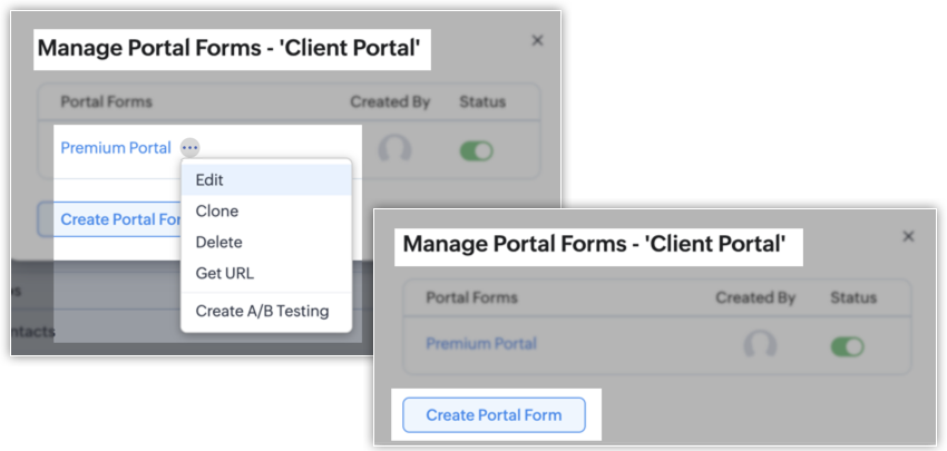 To learn more about how to access portal and how to invite users from Zoho CRM, click here.