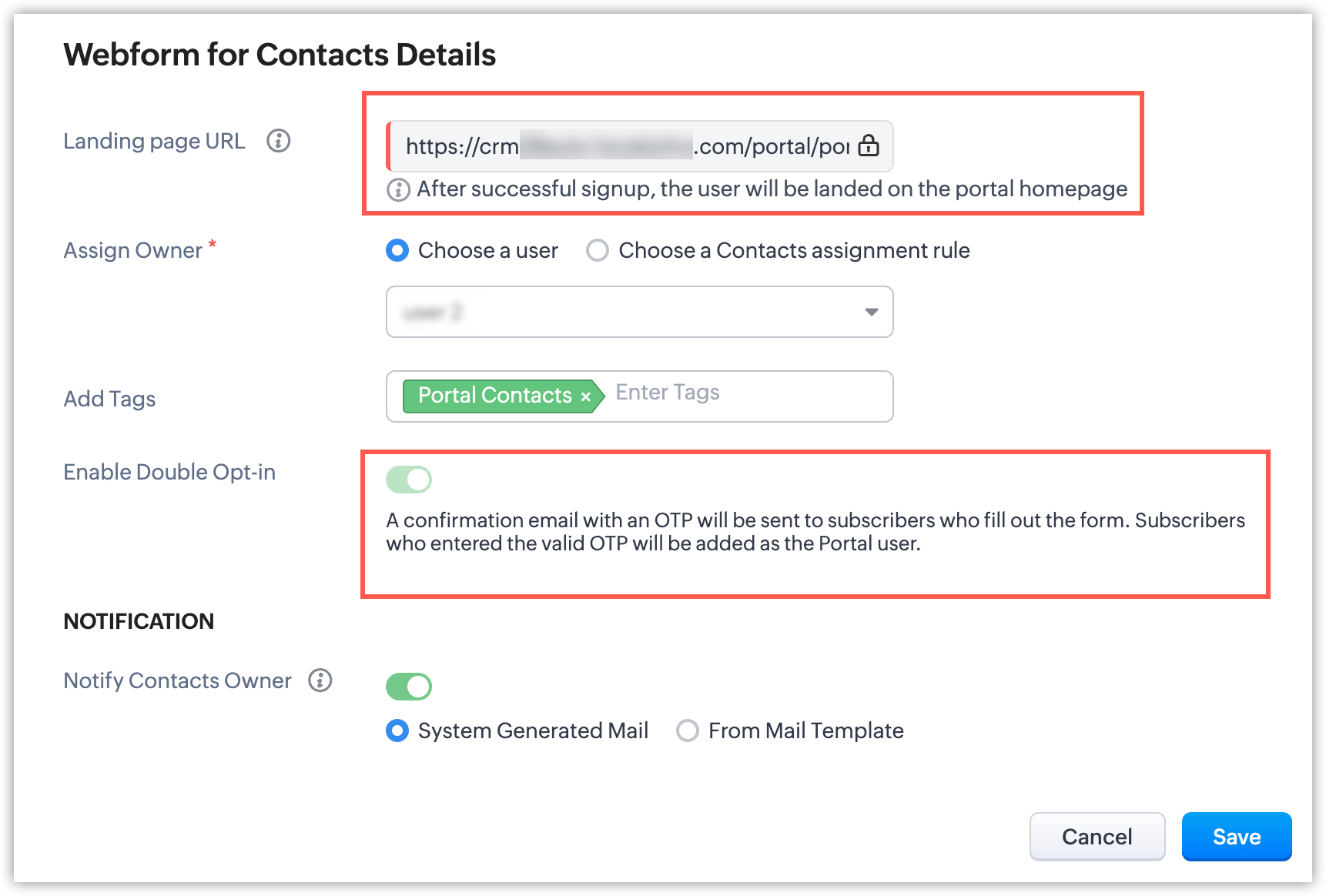- A notification can also be sent to the contact's owner.