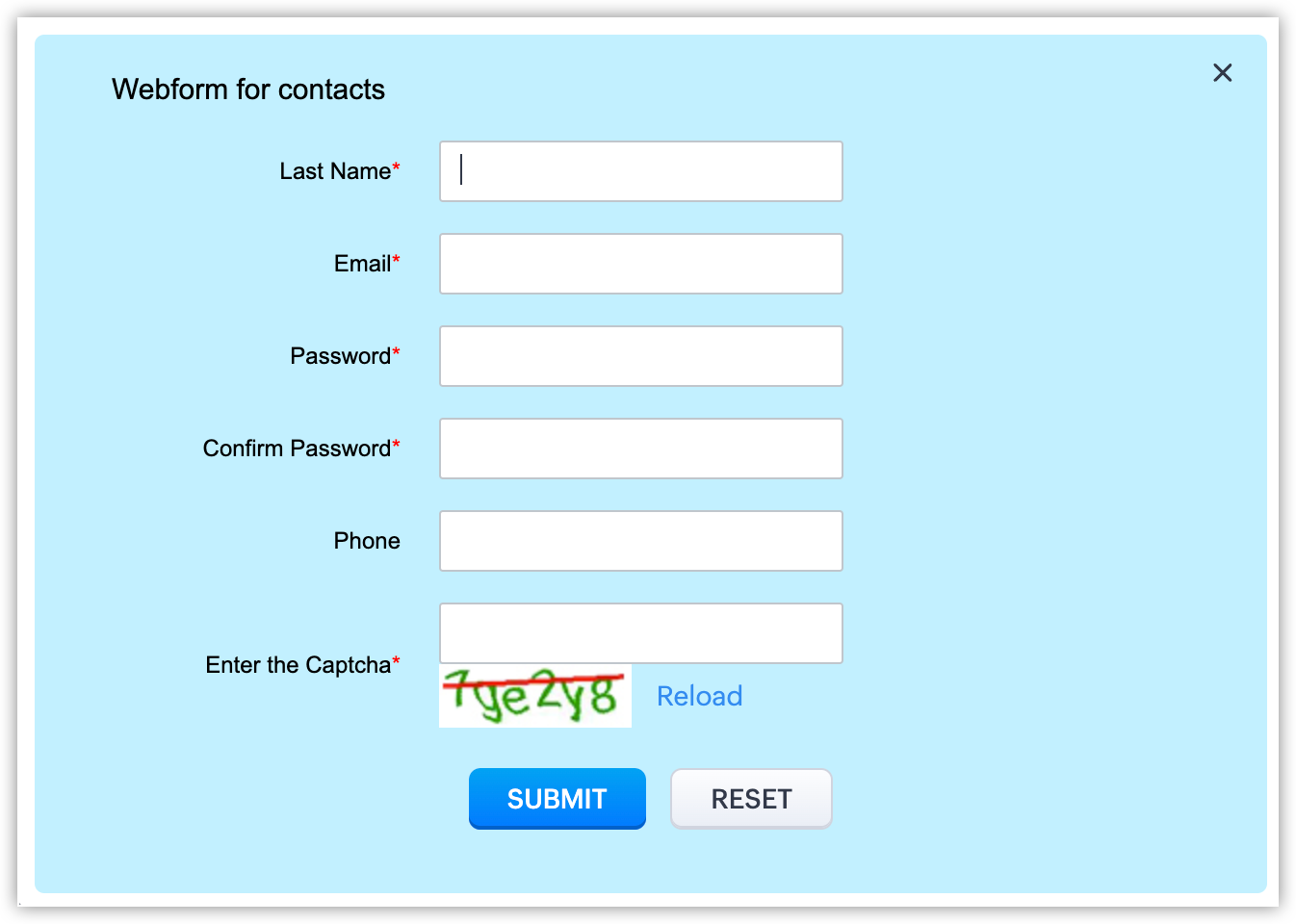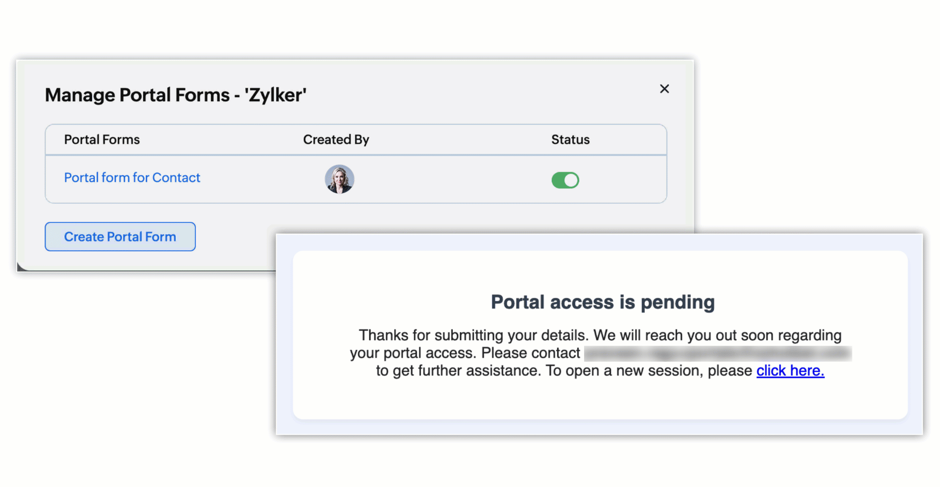 The main purpose of the portal form is to allow customers, vendors, and partners to invite themselves to the organization's portal account. Only valid customers are added to the portal account. Zoho CRM validates the customer before they are added to the portal account.