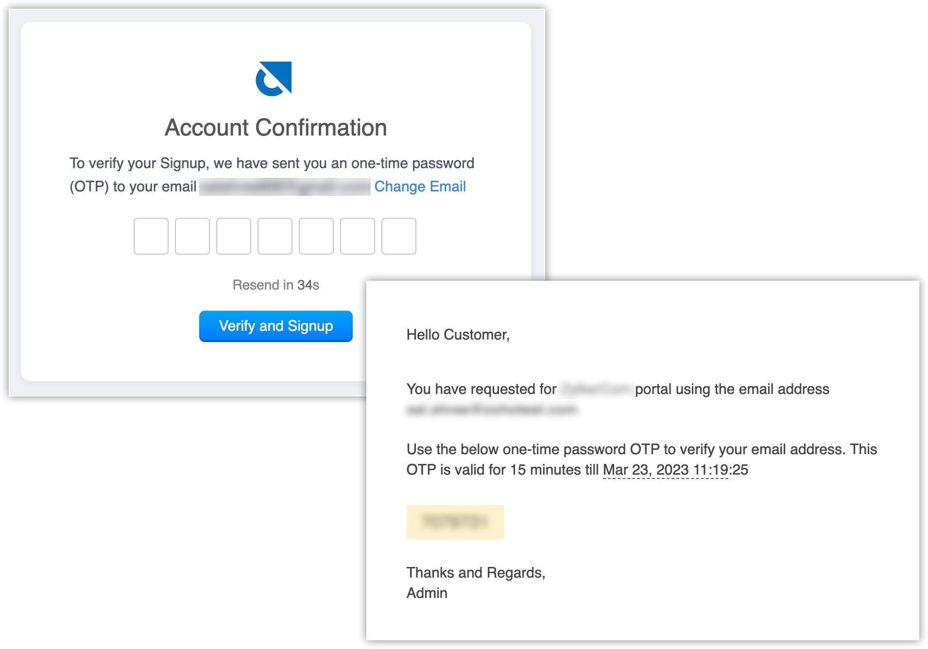 Once the portal form is live, any of your customers that fill in the data will get an OTP to their email address.