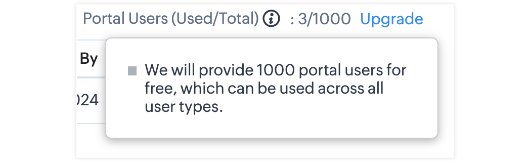 In the portal user type page, you can see the portal user count available for your account. From here, you can purchase the portal user licenses directly.