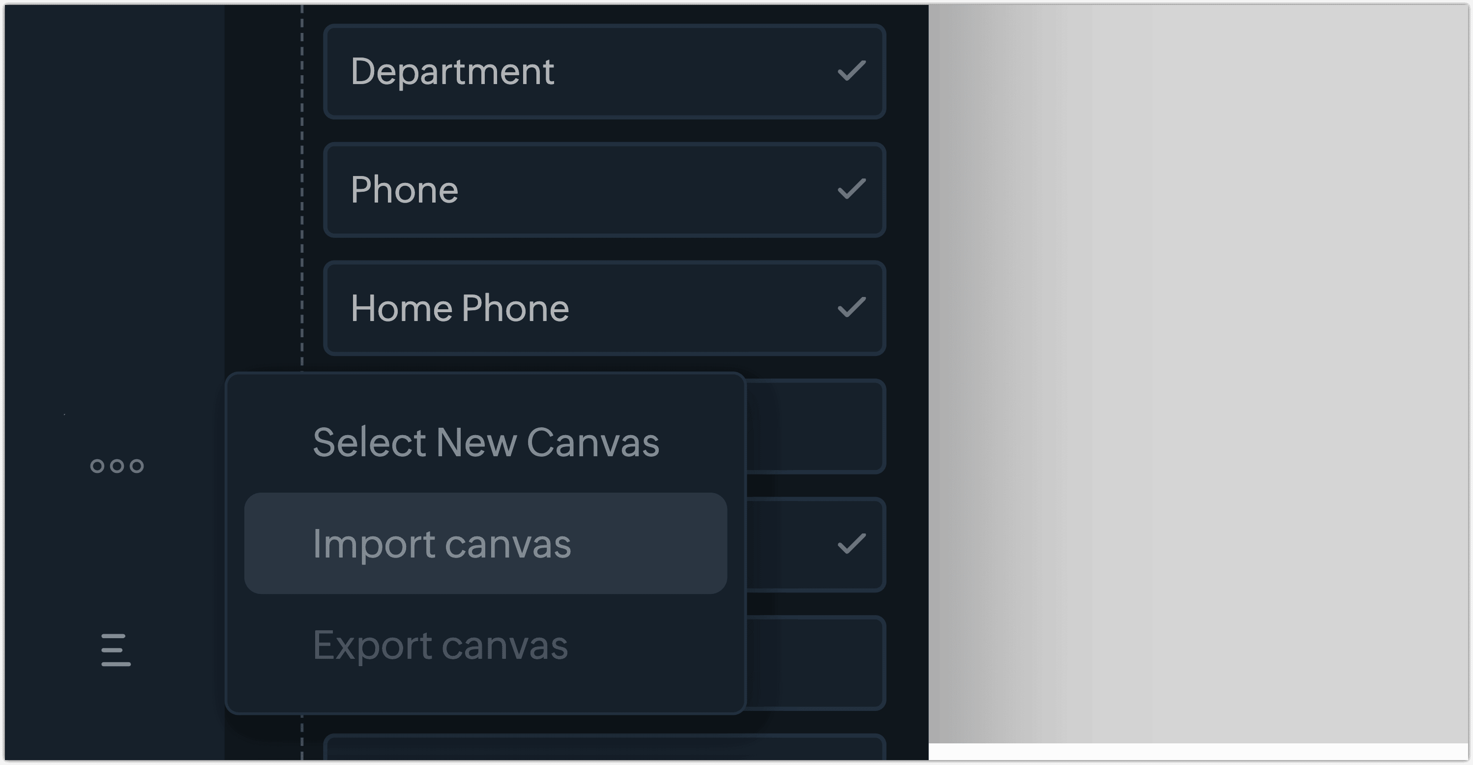 Once you've created a canvas, you can share it with users in your organization or with users in another CRM organization using a unique key. You can initiate the export either from the canvas home page or within the canvas builder.