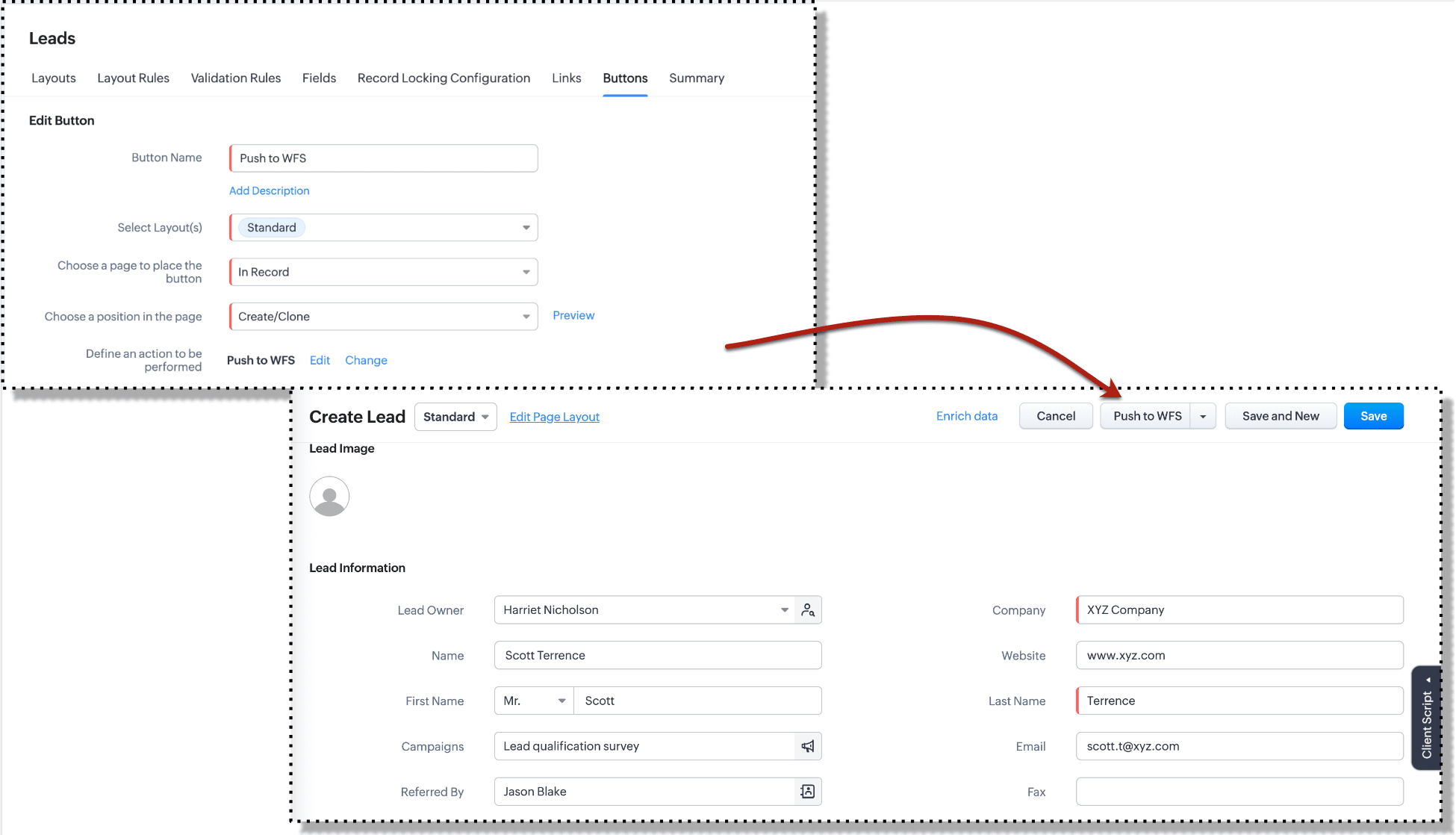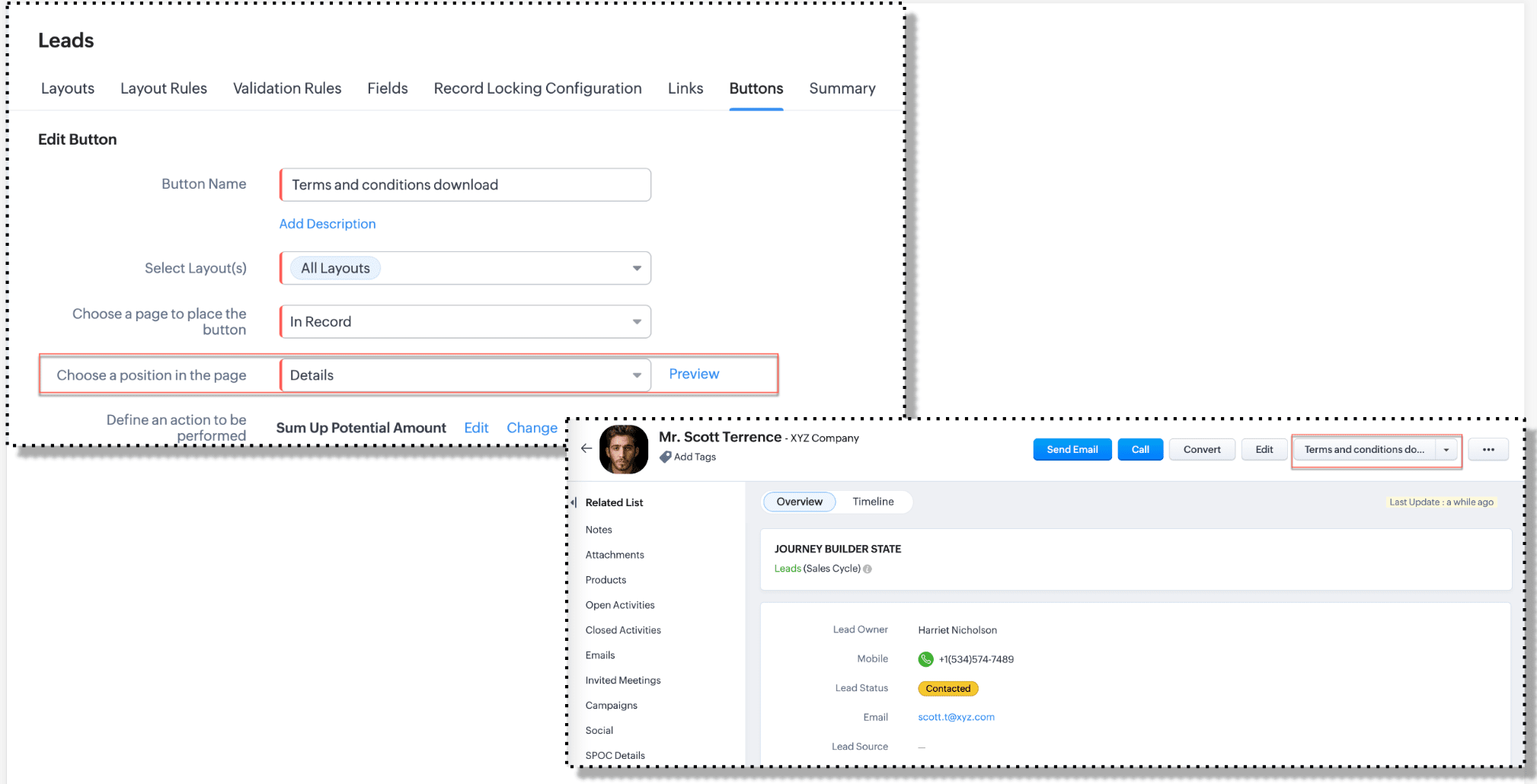 Zoho CRM has standard buttons that are used to execute various predefined actions. For example, Convert is a standard button used to convert a Lead to Contact, Account or Potential. Similarly, Clone is another standard button that is used to clone any record within your CRM account. Likewise, CRM Administrators can create new buttons and define a set of actions based on their requirements . Custom Buttons in Zoho CRM can be used to connect your CRM with third party applications, connect different Zoho CRM modules or connect with other Zoho applications.