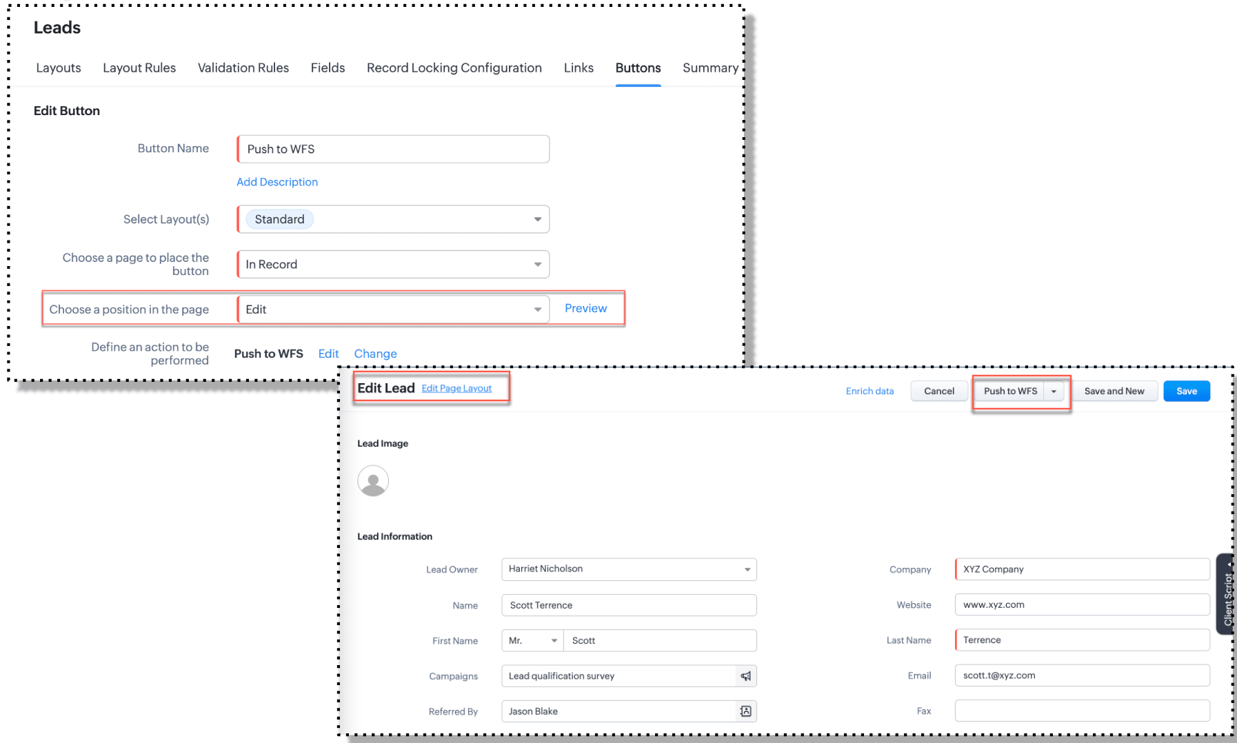 You can edit the existing custom buttons whenever required. Only the Administrator of the Zoho CRM account can edit the custom buttons.