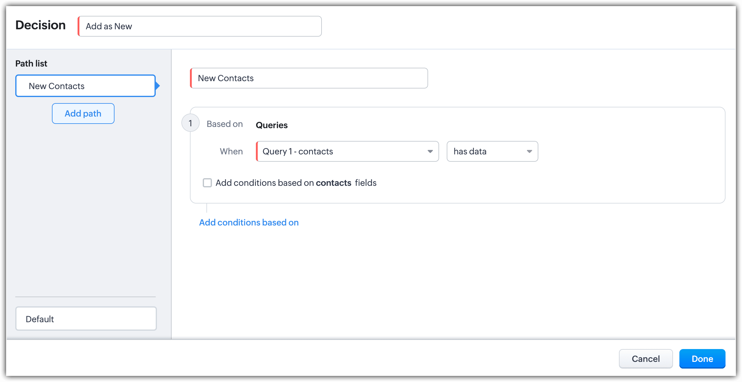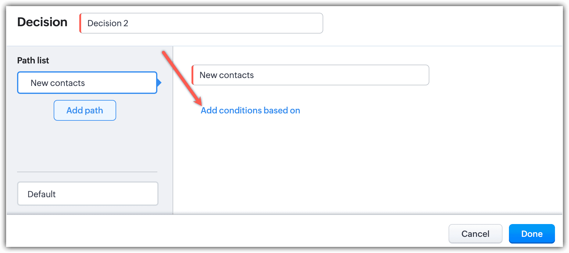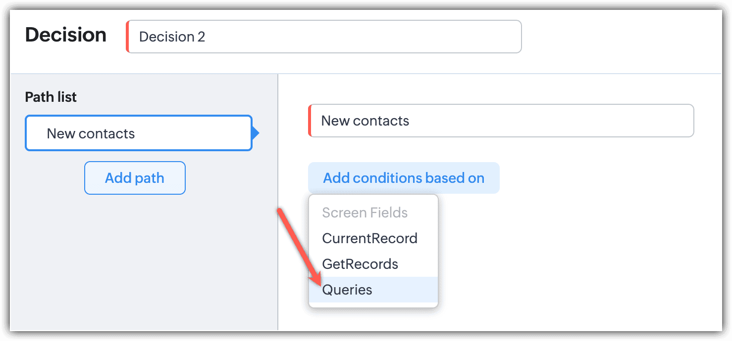 - Select Decision and click Add conditions based on.