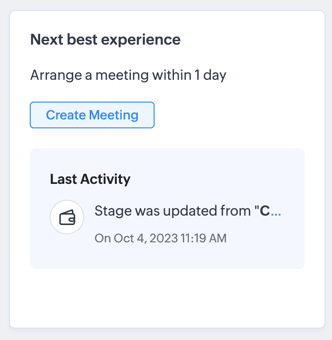 The Zia Insights component lets you display insights generated by Zia for a particular record. The following components are supported in Kiosks: