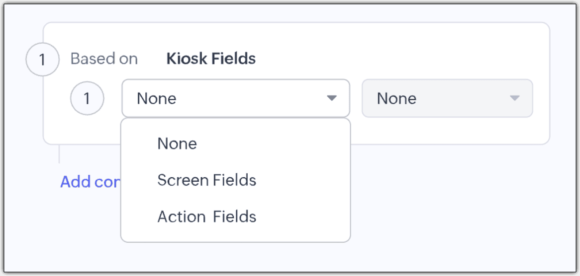 Kiosk fields groups fields added on screens and fields generated from actions.