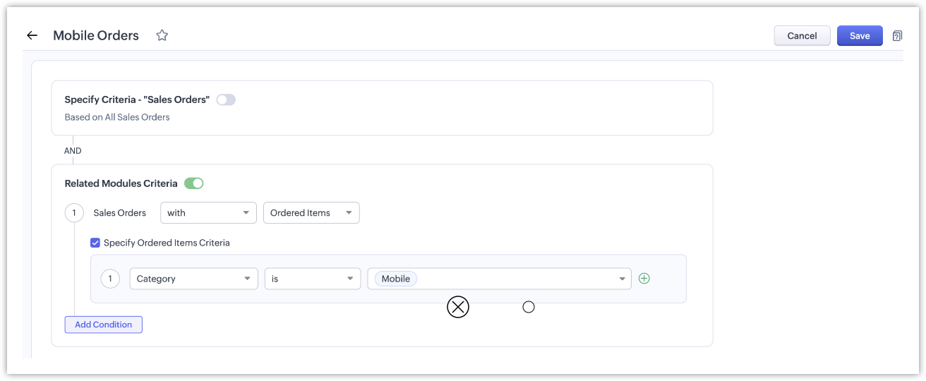 For example, in retail or sales, you might want to view sales orders that include a specific product, such as 'Laptops', or 'Mobiles', ororders with more than five units of any item, useful for tracking bulk purchases.