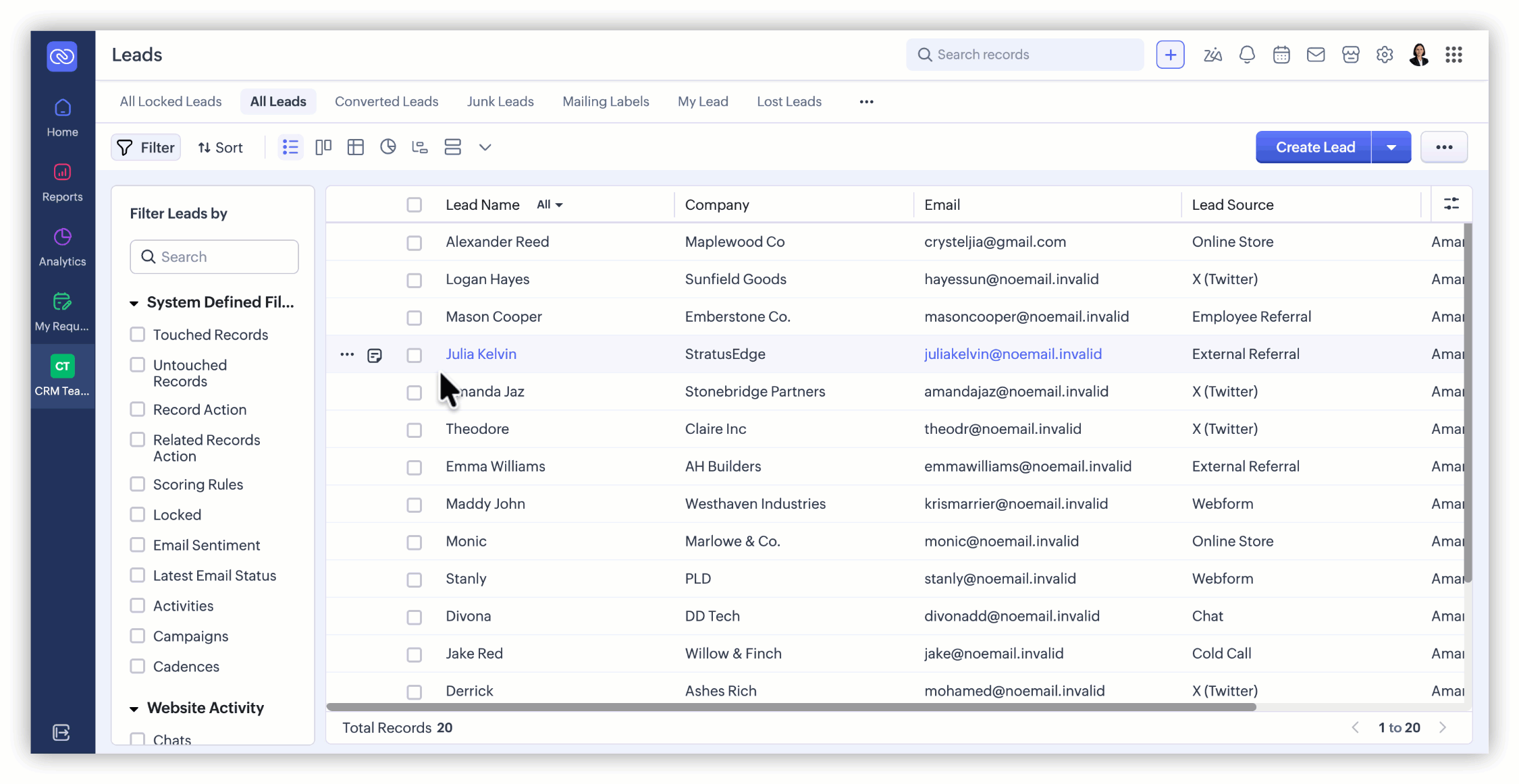 Other Users' Views - Custom views created by fellow users in your CRM account, which doesn't come under the above categories will be displayed. Only Administrators will be able to see the views created by other users.