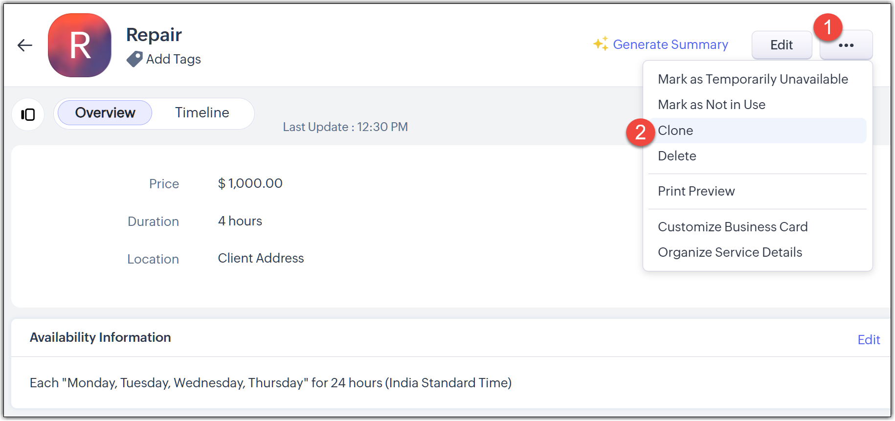 Preparing a service catalog will help employees handle service-related enquiries. They can quickly browse through the list of available and unavailable services, and refer to notes and other details of the customer when answering their queries.
