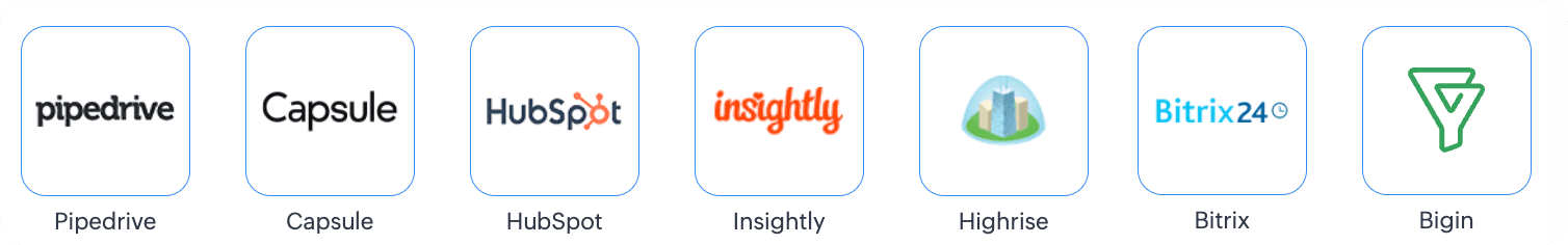 You can migrate from Pipedrive, Capsule, Hubspot, Insightly, Highrise, Bitrix, and Bigin using API transfer. All you need is to feed the API key and the migration will start without any manual intervention.