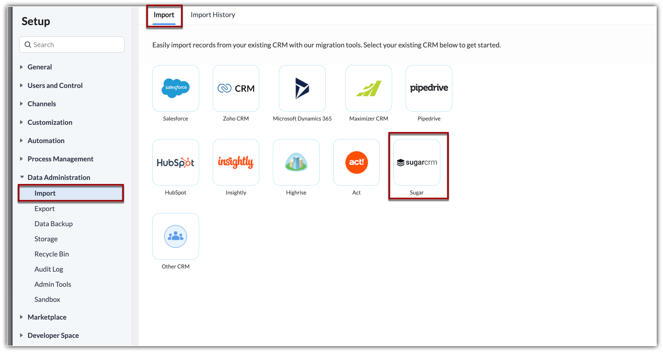 3. In the Import page , choose Sugar CRM.