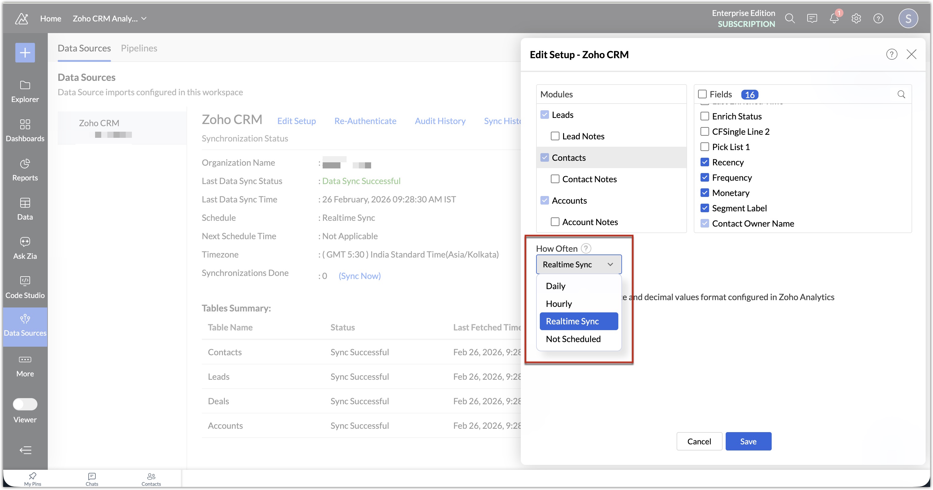 Keeping segmentation fields synchronized across Zoho applications, such as Zoho Campaigns, Zoho Marketing Automation, and Zoho Analytics, is vital for consistent, data-driven engagement. When you add Zoho CRM as the data source for these applications, key segmentation metrics—such as Recency, Frequency, and Monetary (RFM) values and labels—remain synchronized according to the specific sync intervals defined in each app. This synchronization enables teams to create campaigns, develop automation journeys, and generate reports using the latest segmentation data.