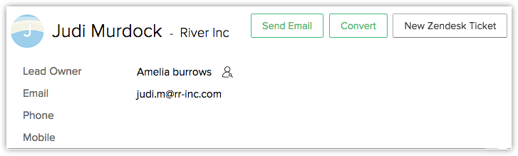 With the New Zendesk Ticket option in Zoho CRM, you can create tickets for leads, contacts, and accounts, and push them to Zendesk. The contacts and leads will be synchronized with Zendesk's contacts data. Similarly, the account details will be synchronized with the organization data in Zendesk.