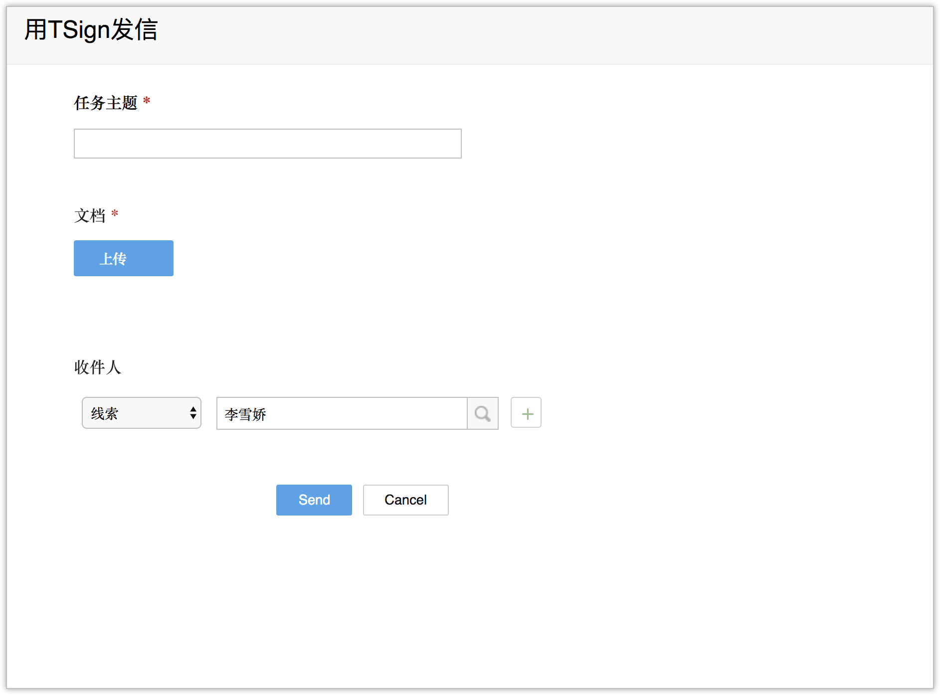 在记录的详细信息页面内,点击通过TSign发送文件。