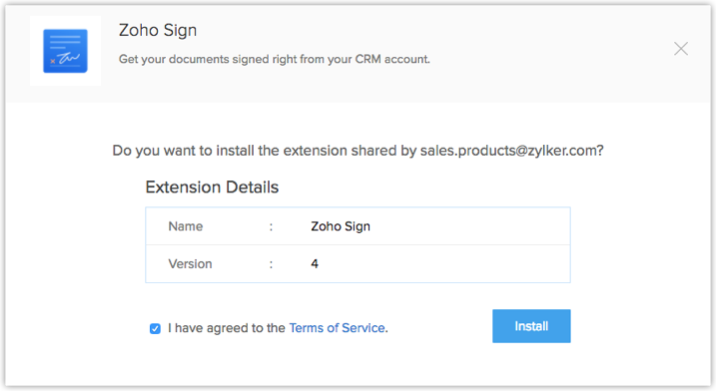 You can install the Zoho Sign extension either from