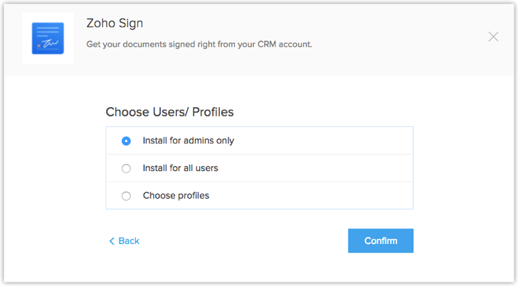 - Install for admins only - The extension will be installed in CRM for only the users with the administrator profile.