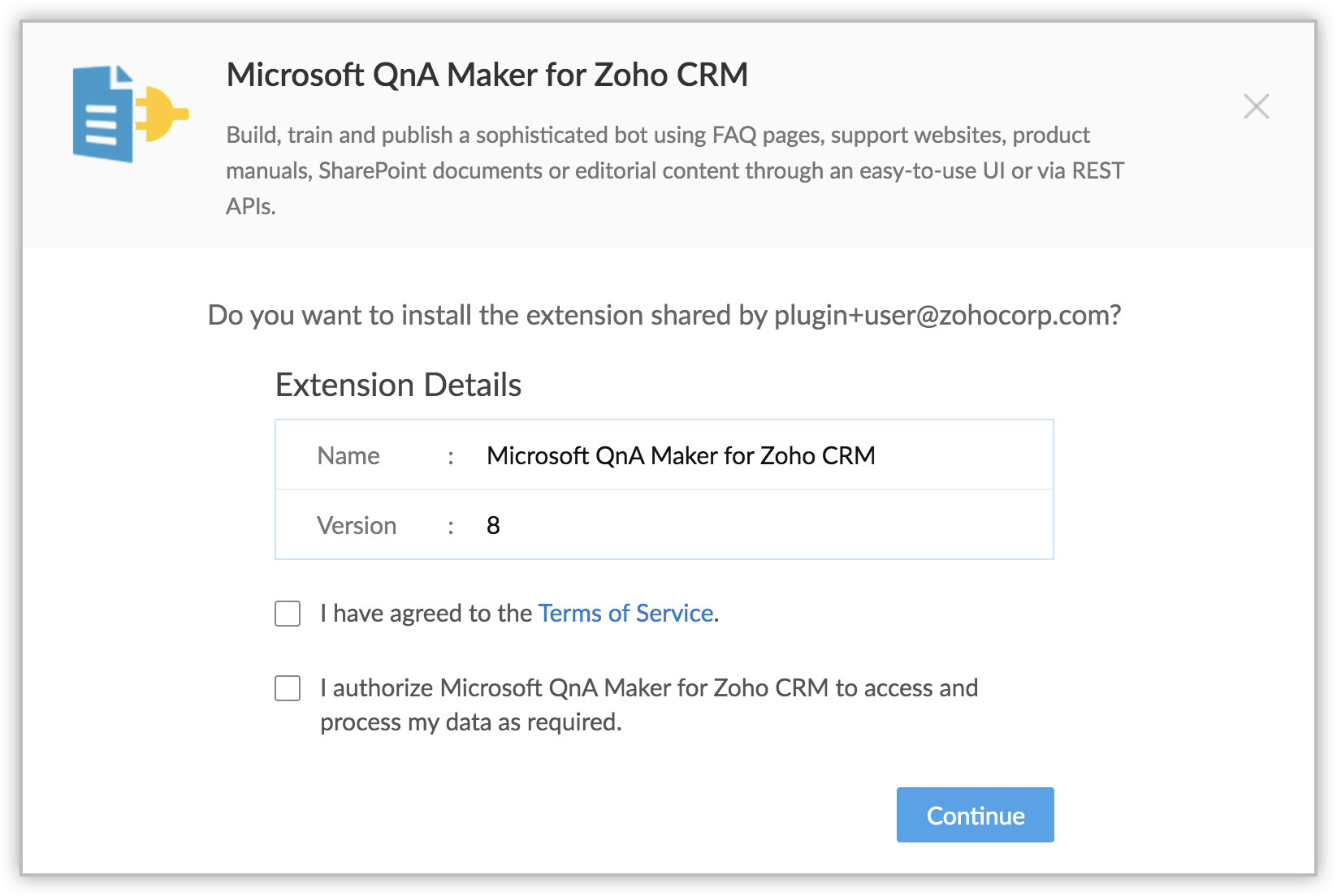 Microsoft QnA Maker for Zoho CRM