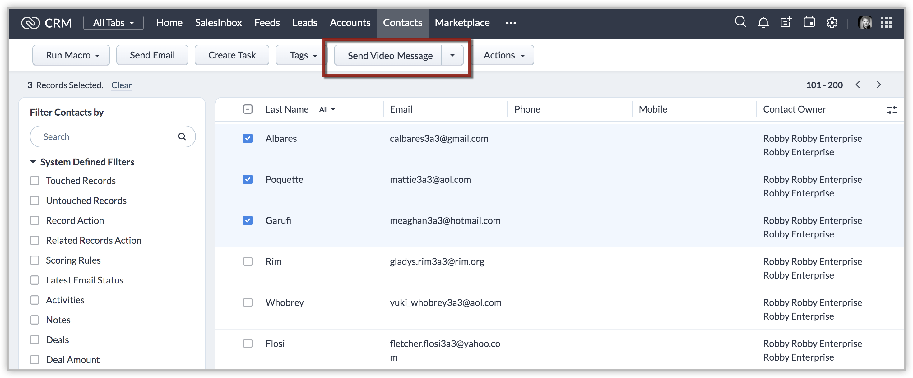 2. Select the records to which you want to send the video message.