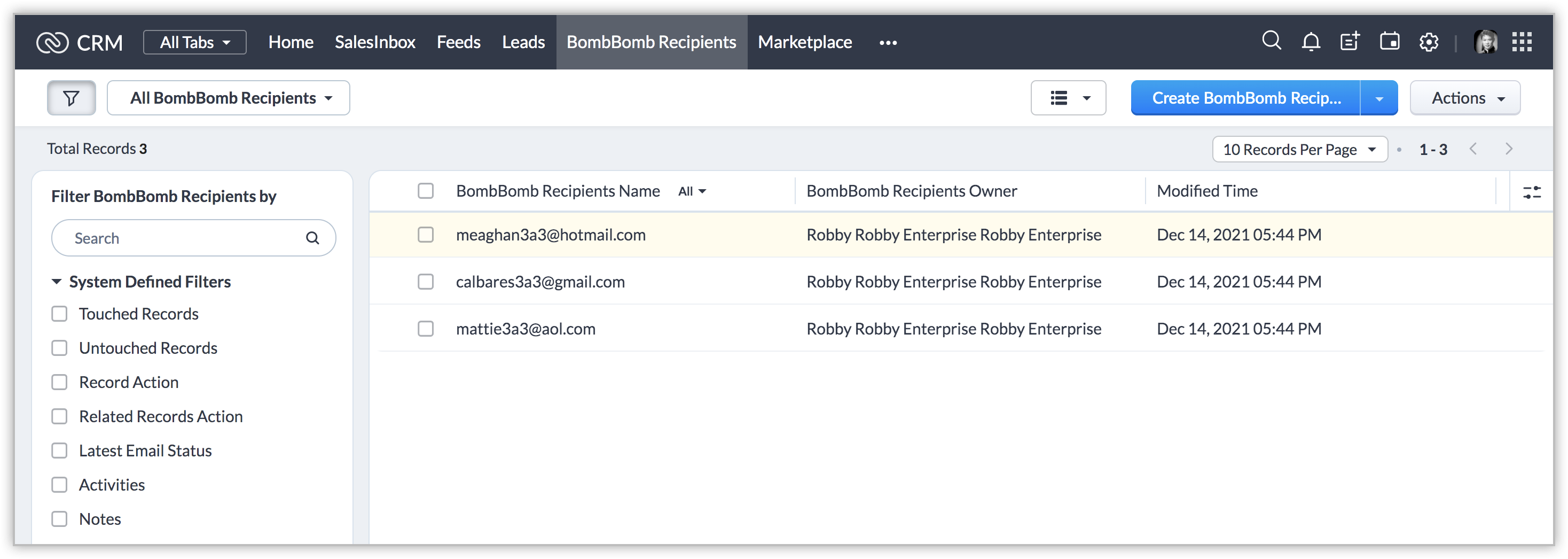 BombBomb for Zoho CRM