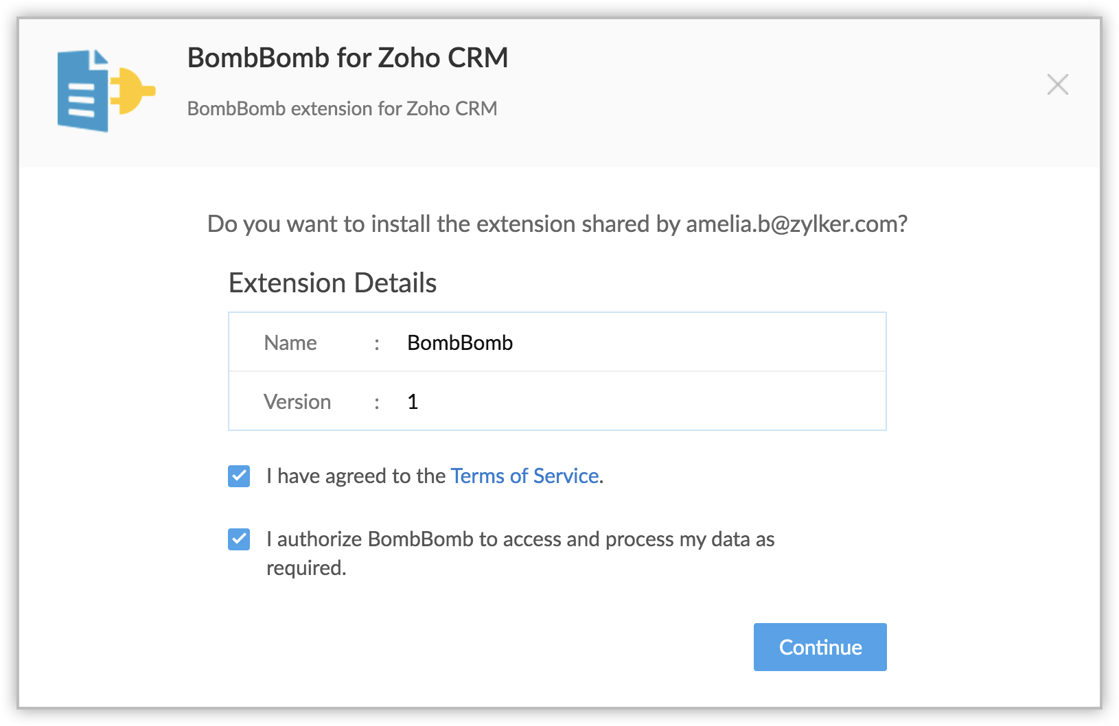 You can either go to the Zoho Marketplace and install the extension or log in to your Zoho CRM account and install from there.