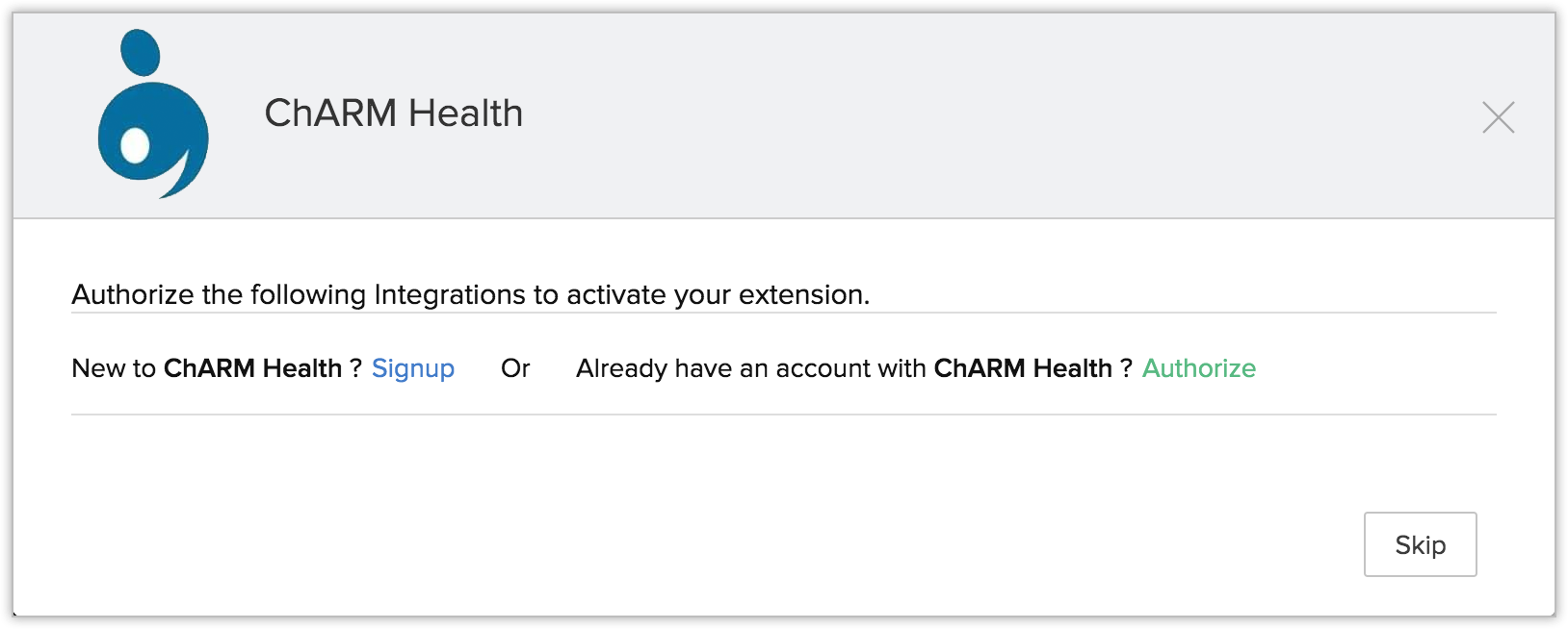 The ChARM Health for Zoho CRM integration is designed to synchronize patient information between ChARM Health and Zoho CRM. With this integration, the patient data can be accessed anytime from either of the two applications, and keep the data always synced between the applications. Also, a new patient record can be created in ChARM Health from Zoho CRM by converting existing contacts to patients.