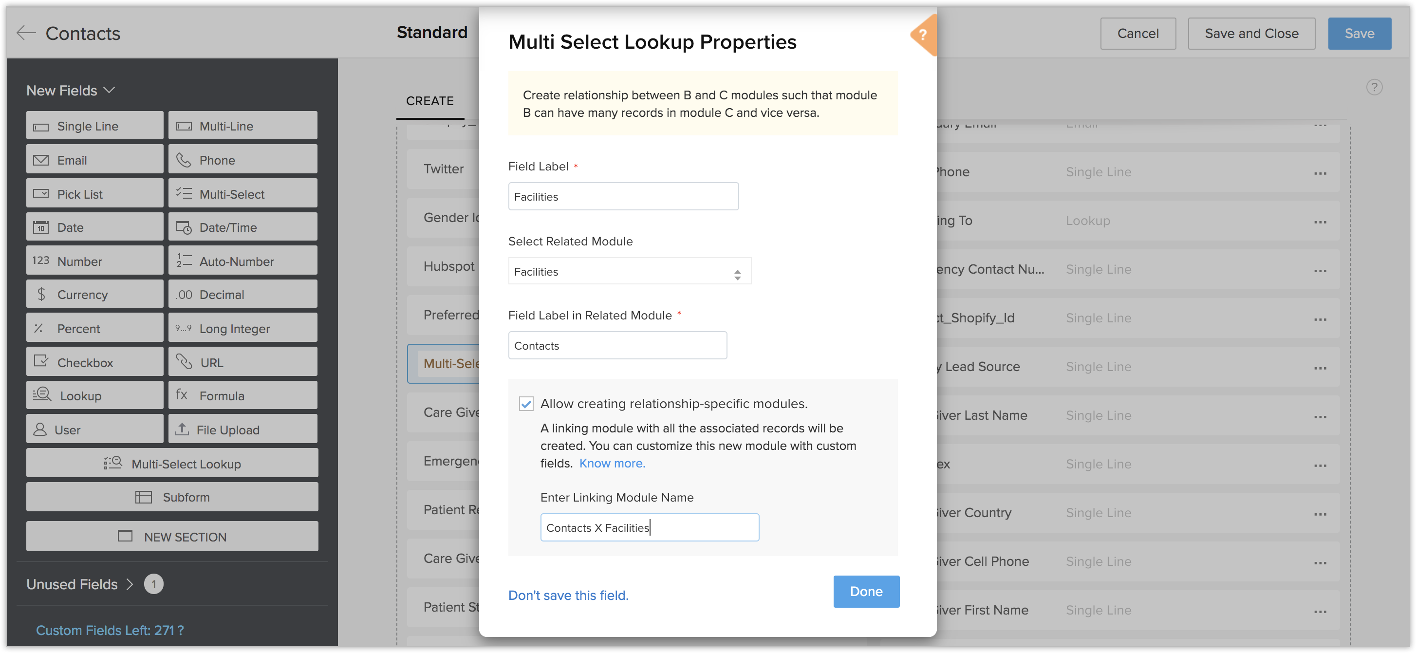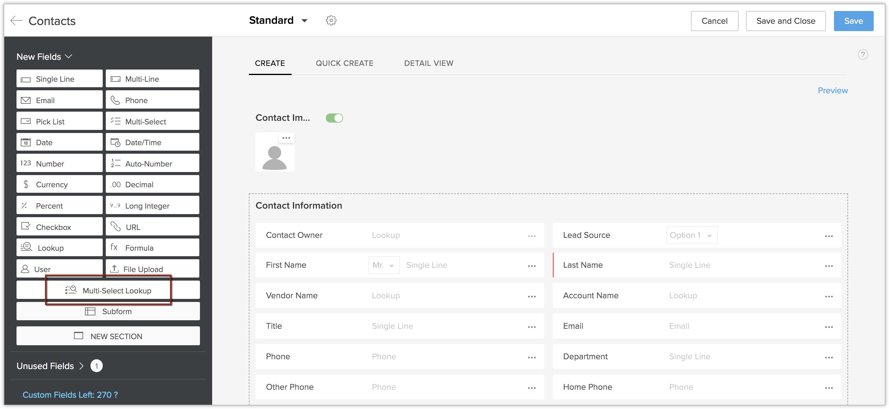 - Drag and drop the Multi-Select Lookup option into the Contact Information layout.