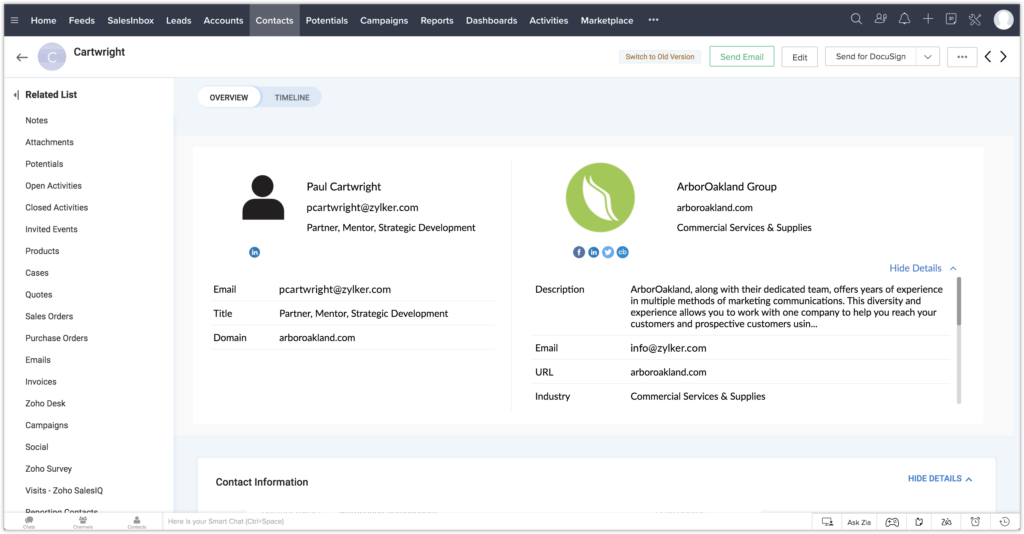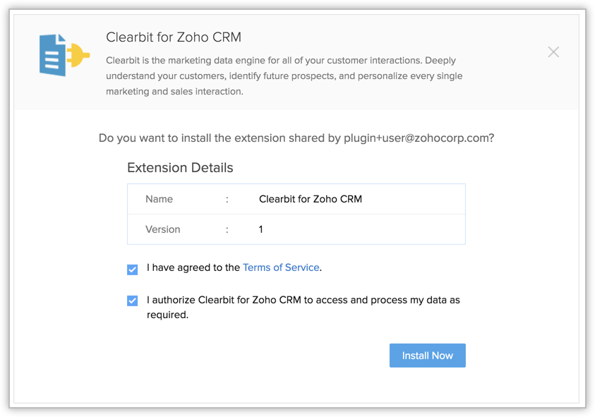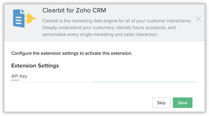 Stop spending your time in researching about your customers (leads, contacts, and accounts) and get enriched data about them right from within Zoho CRM. With the Clearbit integration for Zoho CRM, you can view your customers' information within the business card section. View personal and company details, social media contacts, and more. All you need is an email addresses of the leads and contacts, and a website for accounts.