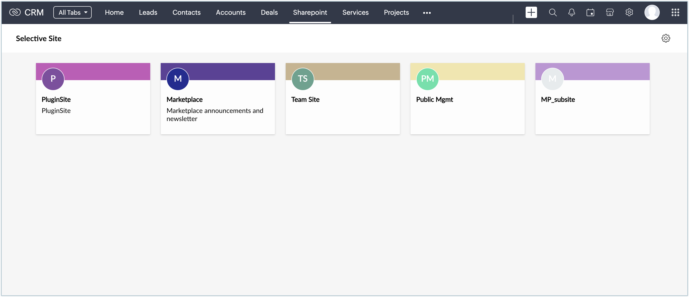 All sites - The lists and libraries from all SharePoint sites will be loaded within Zoho CRM. Here, the default SharePoint site will be the parent site.