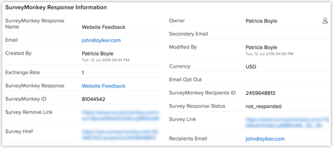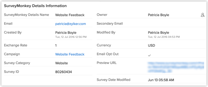 The contacts in SurveyMonkey will be synchronized as either leads or contacts in Zoho CRM.