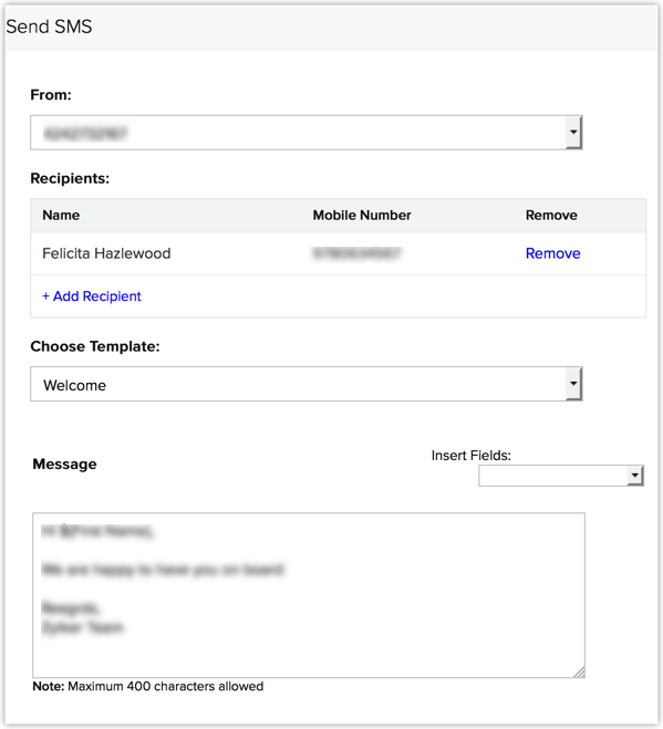 25. sms_message = "Hi, This is test SMS from Zoho CRM.";
