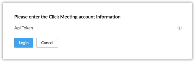Note: To obtain the Api token, enter your site URL in your browser > log in to your Click Meeting account > settings > API.