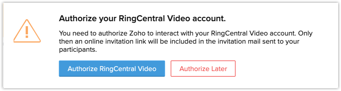 - Click Authorize RingCentral Video in the popup to authorize your RingCentral Video account.