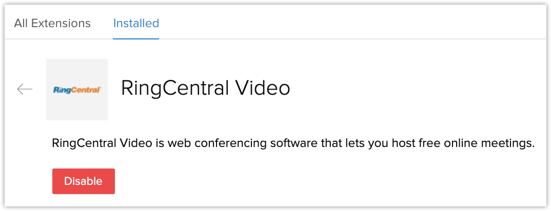 Disabling this extension will not allow you to create an online meeting using RingCentral Video, right from CRM. However, all the events that you have created earlier, will remain intact.